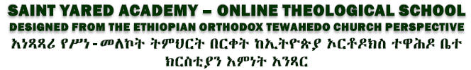 defines the Church as the body of Christ and demonstrates its role and its orders (Sirate Bete Christian). In this course, we study ecclesiastical orders of Orthodox worship, St. Yared's hymns and the value of incense and Holy Icons that make the Orthodox Church different from other denominations.